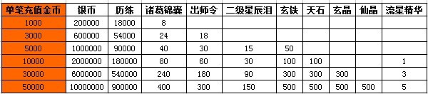 活动期间,玩家单笔充值指定金额,可获得相应单笔充值奖励;